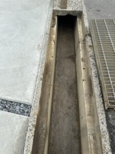 いつもお世話になっている企業様よりご依頼いただいた新築のおうちの前にある側溝の清掃風景になります